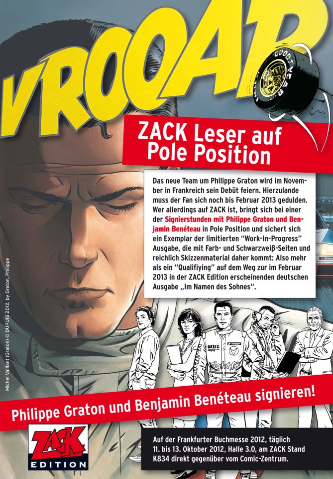 Ab sofort ist ZACK 164 im OnlineShop erhältlich! Im 100 Seiten starken Magazin startet das neue Michel Vaillant Abenteuer mit unglaublichen 24 Seiten! Außerdem der 2.Teil des tollen Philippe Graton Interviews enthalten, dessen erster Teil bereits im Januar in Alfons #3 zu lesen war.