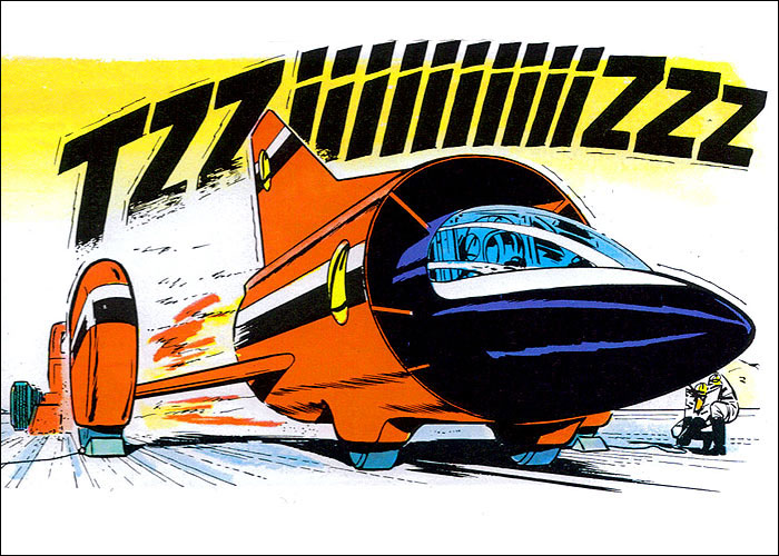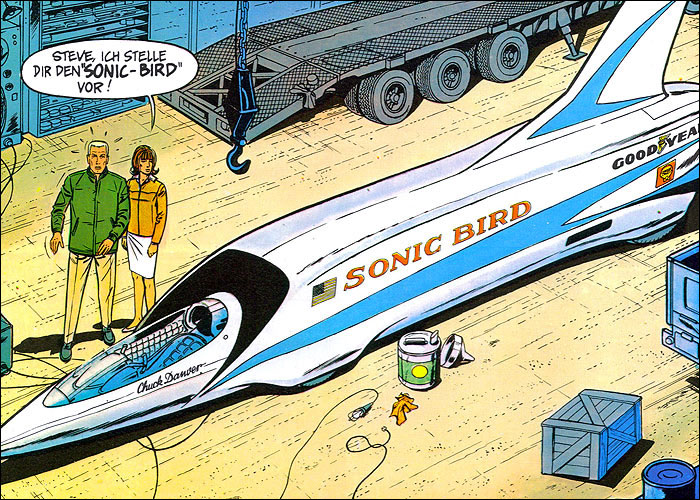 Auf dem Salzsee von Bonneville pilotiert Steve Warson den Sonic Bird von Chuck Danver, um die Schallmauer zu durchstoßen. Sein Gegner ist der gefährliche Leader. Mit ihm etabliert Graton einen bad guy, dessen Wirken die Serie bis heute prägt. Steves dramatische Rekordfahrt, über mehrere Seiten mit bestechender Brillanz inszeniert, bleibt in diesem Album unvergesslich. Mach 1 für Steve Warson ist ein tolles Steve Warson-Abenteuer und eines der Schlüsselalben der Serie. MV selbst hat nur eine Nebenrolle. |