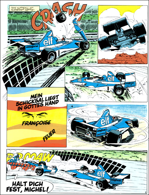 Mit Rätsel um Steve Warson legte Jean Graton den Grundstein für die weitere Entwicklung der Serie. Ruth Randson (siehe A25) wird als Ersatzfahrerin für den verletzten MV verpflichtet und startet mit Steve Warson in Indianapolis. Er entdeckt, dass Ruth die Tochter des - gebrochenen und stark gealterten - Leaders ist. Lange Rennsequenzen dominieren dieses Album, in dem Hawkins seine Karriere als Freddy-Krueger-Double beginnt. In dieser Geschichte muss Michel erstmals in seiner Karriere verletzungsbedingt pausieren. |