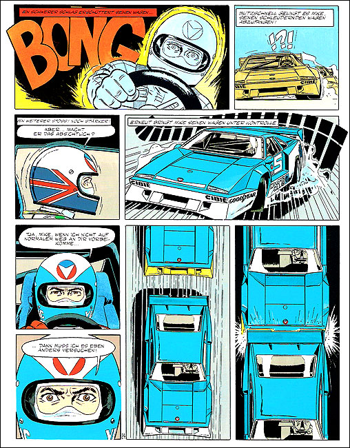 Der ehrgeizige Yves Douleac bestreitet zusammen mit Gabriele Spangenberg die Marken-Europameisterschaft auf einem Hönerplast-Commando. Von Dr. Spangenberg unter Druck gesetzt, verliert Yves mehrmals die Nerven und legt Allüren an den Tag. Als der Der Hitzkopf durchdreht, wirft ihn Jean-Pierre aus der Fahrermannschaft. 18 Jahre nach A4 stellte Jean Graton wieder Yves Douleac in den Mittelpunkt eines Albums, wies ihm aber die undankbare Rolle des hasserfüllten Cholerikers zu. Michel Vaillant hat nur ein paar Auftritte am Beginn der Geschichte. |