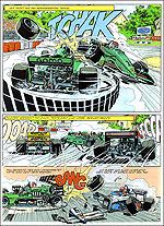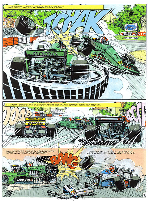 Michel und Jean Pierre besuchen das Formel 3000-Rennen in Pau. Das Gerücht, Michel würde sich demnächst vom Rennsport zurückziehen, sorgt nicht nur bei den Journalisten für Aufregung, sondern auch bei den jungen Nachwuchsfahrern, die auf einen Platz im F1-Vaillante spekulieren. Dieses Album wird von ausgedehnten Rennsequenzen dominiert. Michel Vaillant (der nur in 29 Panels auftaucht) spielt lediglich eine Nebenrolle in dieser eher handlungsarmen, doch optisch ansprechenden Geschichte. |