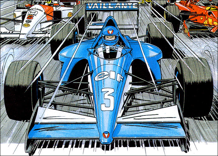 Steve Warson startet in einem Leader-Boliden in die Formel-1-Saison und wird von Ruth zum neuen "Leader" ernannt. Nachdem Der Herr der Welt die ersten Rennen für sich entscheiden kann, gelingt es Michel Vaillant, zu ihm aufzuschließen. Mit diesem Album beendete Jean Graton nach 36 Jahren seine Arbeit als Vaillant-Szenarist. Steve in der legendären Kostümierung des Leader zu sehen, ist sicher gewöhnungsbedürftig. Dieses Album läuft über eine komplette Formel-1-Saison und überzeugt vor allem durch die graphisch hochklassigen Rennsequenzen. |