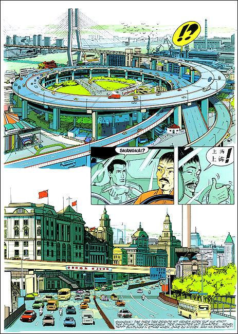 Michel startet beim Großen Preis von China auf dem neu erbauten Shanghai International Circuit. Am Abend vor dem Rennen verschwindet der Vaillante Xing-Qiu, ein geheimer Wasserstoff-Prototyp, der für den chinesischen Markt entwickelt wurde. In China Moon legt Philippe Graton - mit Reminiszenen an A9 und A43 - eine solide Thrillergeschiche vor, die zu wesentlichen Teilen im nächtlichen Shanghai spielt. Überraschenderweise mutiert MV hier zu einer bobcramermäßigen Pistensau - immerhin, um den Planeten zu retten.