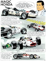 Soichiro Honda gründete 1948 die Honda Corporation. Rechtzeitig zum 50. Geburtstag der Company erschien dieses Dossier Michel Vaillant. Wir erfahren, dass der Firmengründer schon früh an jedweder Technik interessiert war. Nach der Lehre arbeitete er sechs Jahre als Kraftfahrzeugmechaniker und fuhr danach sogar Rennen!