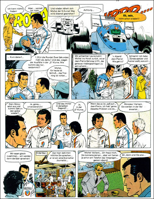 Beim Formel 1-Rennen im kanadischen Mont Tremblant kämpfen Michel Vaillant und seine Fahrerkollegen mit unerklärlichen Zündaussetzern. Es stellt sich heraus, dass ein ominöser Erfinder die Technik der F1-Boliden manipuliert, um 20.000 Dollar zu erpressen. Mit Das Rätsel der S-Kurve gelang Jean Graton eine hervorragend gestaltete Kurzgeschichte mit einer ungewöhnlichen Thematik. Am Ende wirbt Michel Vaillant für "Das große ZACK-Buch vom Rennsport" (im Original wohl für das "Michel Vaillant Annual"). |