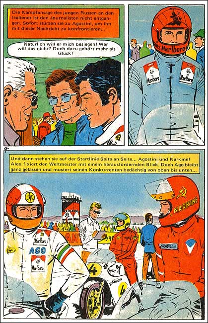 Auf der Rennstrecke von Paul Ricard findet der Große Preis von Frankreich für Motorräder statt. Giacomo Agostini (K27 - Das Ende einer Karriere) tritt gegen Alex Narkine (K25 - Sie kamen aus dem Osten) an, der auf einer Vaillante-Maschine startet. Obwohl das Duell mit dem Weltmeister mit der Ankündigung endet, Agostini werde in Zukunft für Vaillante antreten, verschwand "Ago" danach aus dem Vaillant-Universum. Bei dieser Geschichte handelt es sich um einen Werbe-Comic für den Paul-Ricard-Kurs, der in die normale Vaillant-Chronologie eingegliedert wurde.