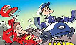 Zwischen 1998 und 2002 publizierte das deutsche Zeichner- und Autorengespann Kim Schmidt und Lutz Mathesdorf drei Funny-Bände über Michael Schumacher. Ob man den dort dargebotenen "Humor" tatsächlich als solchen bezeichnen kann, muss jeder für sich selbst entscheiden. |