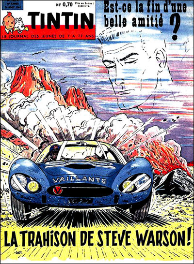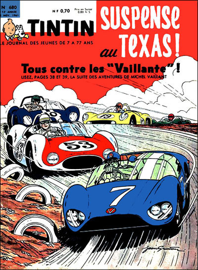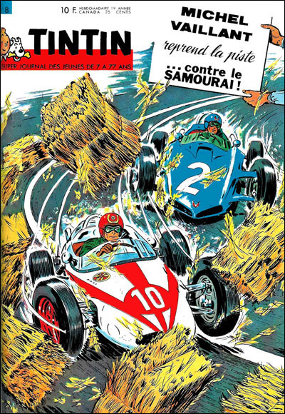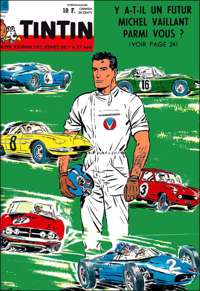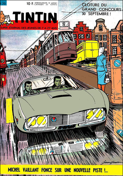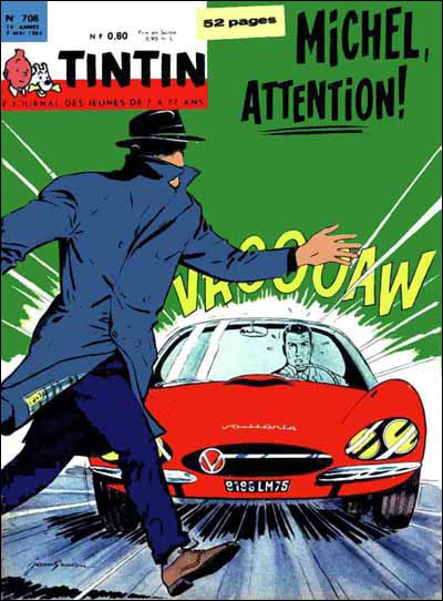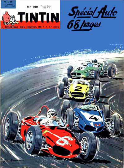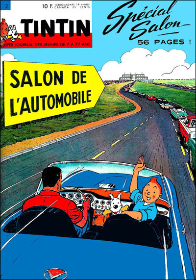 Ausgabe 2/1964: Tim, Struppi und MV rasen im Cabrio zum Autosalon. Ein comichistorisch einmaliges Crossover von Graton und Hergé.