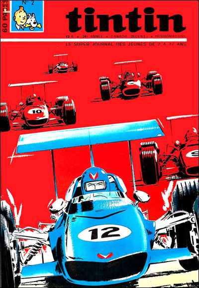 Ausgabe 2/1969: Ein Cover zu A18 - Öl auf der Piste. Mit ungewöhnlicher Farbgebung und dem ersten Spoiler-Boliden von Vaillante.