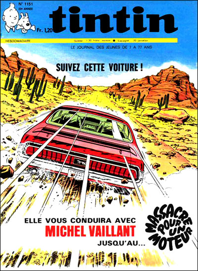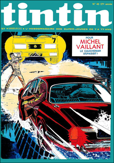 Ausgabe 43/1972: Ein weiteres Cover zu A24 - Der Alptraum. Michel zwischen dem Schurken-Jaguar und einem Vaillant-LKW (diese Szene gibt es im Album nicht).