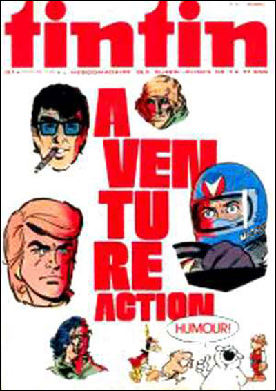 Tintin l'hepdoptimiste 55 (1974): Michel, Francoise und Belmondo versammeln sich auf einem Cover zu A25 - Mädchen und Motoren.