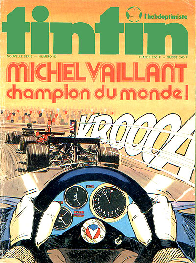 Tintin l'hepdoptimiste 87 (1974): Michel rast seinem ersten Weltmeistertitel entgegen (A26 - Der Weltmeister).