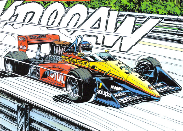 Der 82er F1 begegnet uns nur kurz auf der Teststrecke (A41 - Rallye der tausend Tränen: Paris-Dakar).