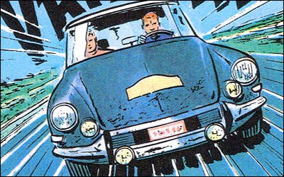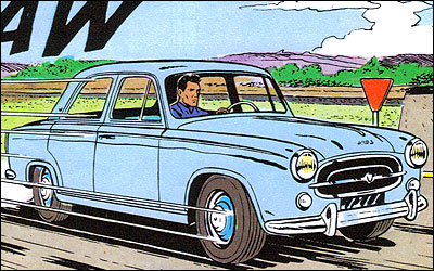 A7 - Teufelskerle (1962): Den Peugeot 403 crasht Michel von der Landstraße.