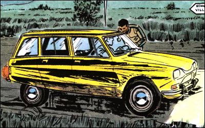 A24 - Alptraum ohne Ende (1972): Mit dem Citroen Ami flieht Michel durch die nächtliche Camarque.
