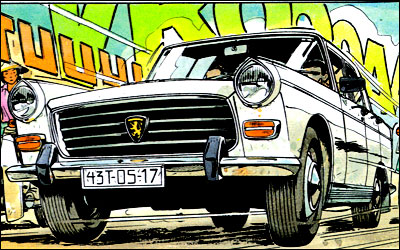 A57 - Eine Spur von Jade (1994): In Saigon flüchtet Julie Wood vor dem weißen Peugeot 404.