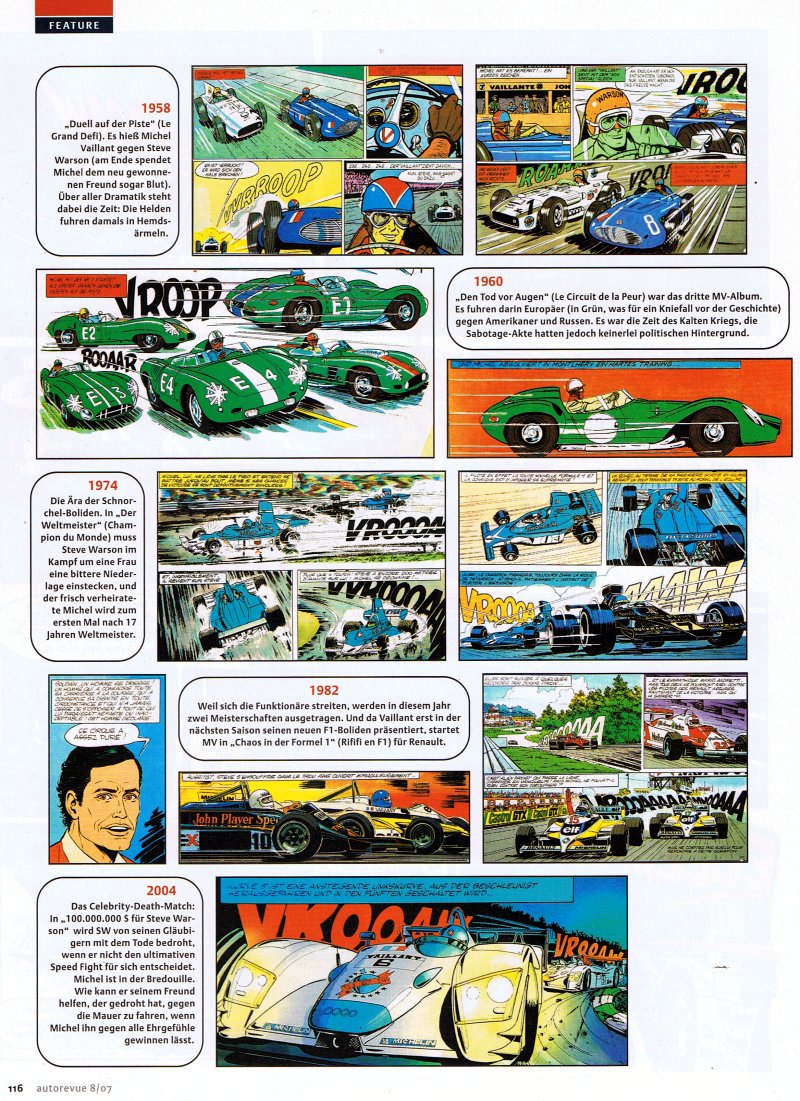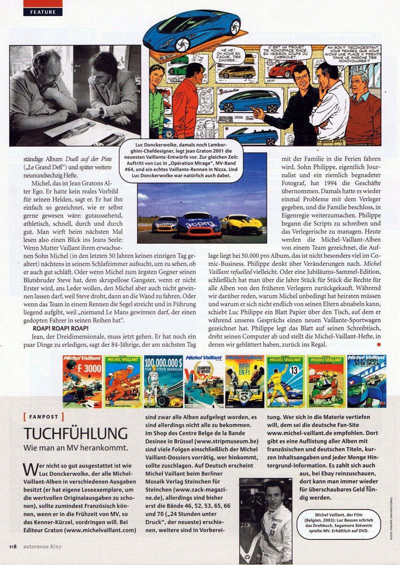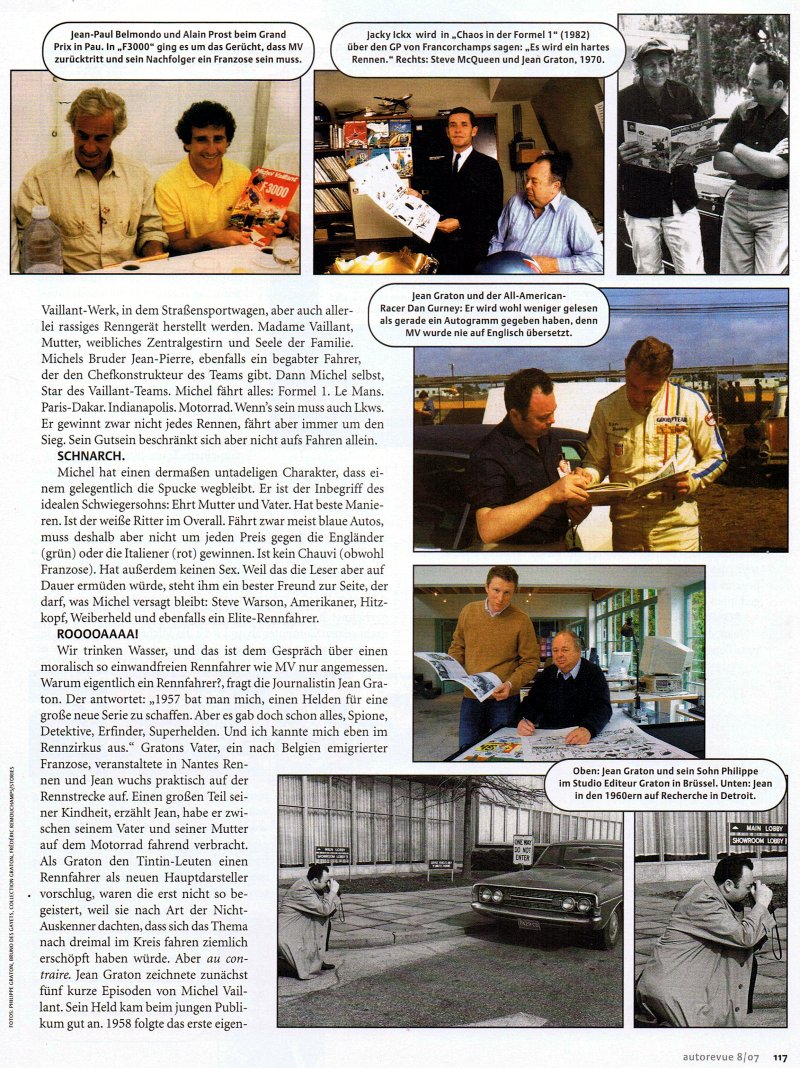 In der Auto Revue 8/2007 erschien ein Artikel zum 50-jährigen Jubiläum von Michel Vaillant (erstaunliche 5 Seiten lang!) mit einem Kurzabriss des Vaillant-Universums und Interview-Schnipseln mit Jean und Philippe Graton.