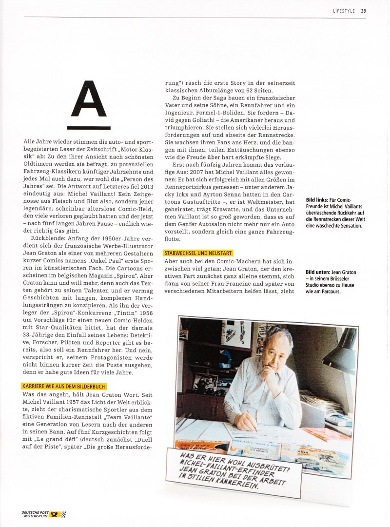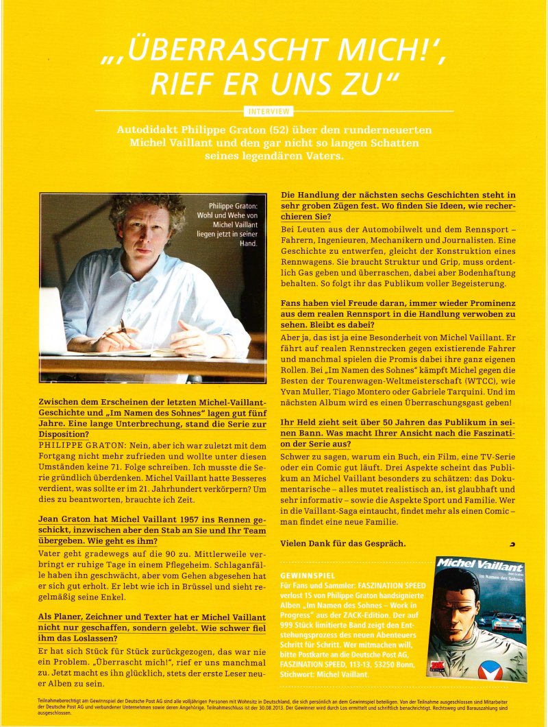 Im Motorsportmagazin der Deutschen Post AG "Speed News" erschien in der Ausgabe Nr. 1 / 2013 ein Artikel über Michel Vaillant mit einem Interview mit Philippe Graton.