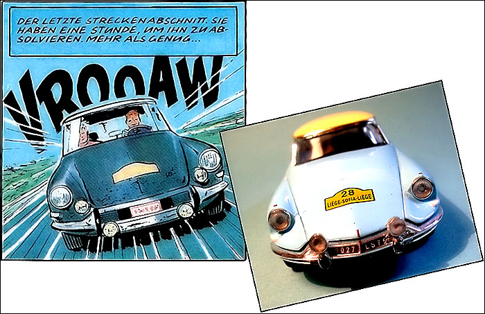 Bei dieser Rallye ist auch ein Citroen DS / ID 19 unterwegs. Im Gegensatz zur Graton-Story, wo das Citroën-Team es am Ende ganz knapp nicht schafft, den Sieg "nach Hause zu fahren", siegten Lucien Bianchi (B) und Georges Harris (B) bei der echten Rally Liège-Sofia-Liège im Jahre 1961 überlegen. Der Citroën war in den 1960er Jahren ein ernstzunehmender Gegner. Wegen seiner revolutionären Konzeption war der DS eigentlich eine ruhige und komfortable Familienlimousine, was aber einige Rennfahrer nicht davon abhielt, mit ihm an Wettkämpfen teilzunehmen. Sie schätzten das exzellente Fahrverhalten des DS.