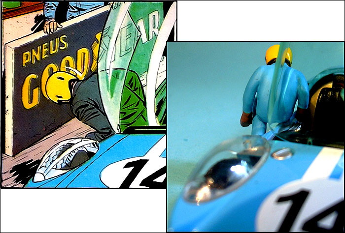 ... Runden dreht. Hier entsteigt der - im doppelten Wortsinn - mitgenommene Jet-Pilot dem Boliden.