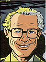 Bei dem sympathischen Herrn mit dem Alfred E. Neumann-Gesicht, der in den Vaillant-Geschichten jahrzehntelang am Pistenrand auftauchte, handelte es sich um den bekannten Formel-1-Journalisten Gérard Crombac. Zwischen 1971 (K12 - Kampf um 1/10 Sekunden) und 1999 (A62 - Der Sponsor) war der Graton-Kumpel ein gern gesehener Gast im Vaillant-Universum. |