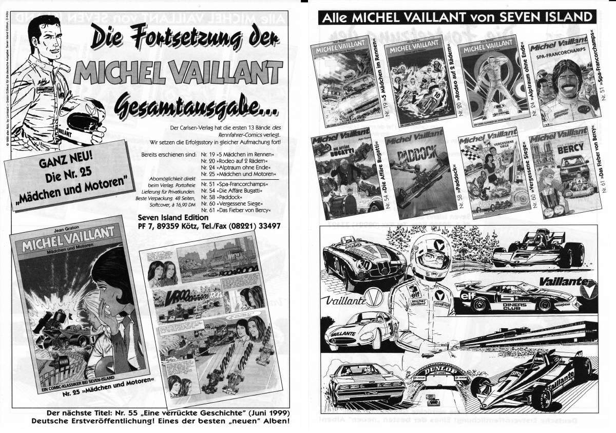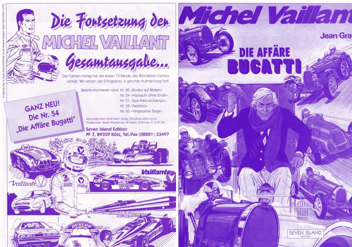 - Kein Autor: "Die Fortsetzung der Michel Vaillant Gesamtausgabe... (A54)" (beigelegt, Format: DIN A5, Farbe: violett)