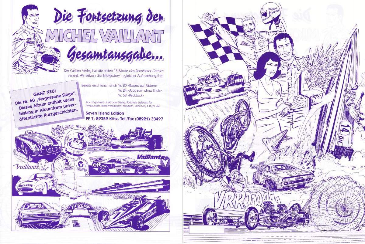 - Kein Autor: "Die Fortsetzung der Michel Vaillant Gesamtausgabe... (A60)" (beigelegt, Format: DIN A4, Farbe: violett)