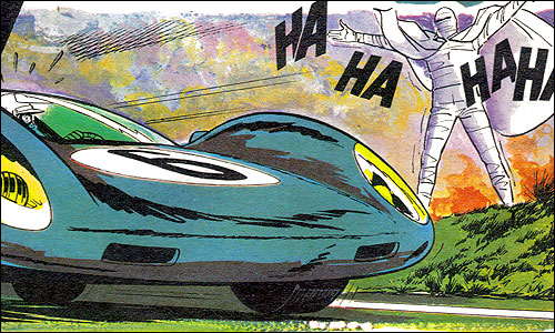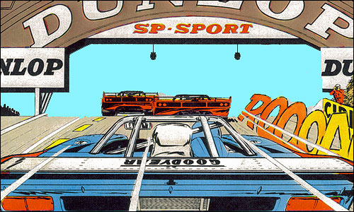 1973: Durchfahrt durch den Dunlop-Reifen. Dieser zweiseitige Prolog wurde extra für die ZACK-Veröffentlichung von A5 gezeichnet und steht im Mosaik-Album ebenfalls am Anfang der Story. (A5 - Die 13 ist am Start).