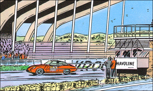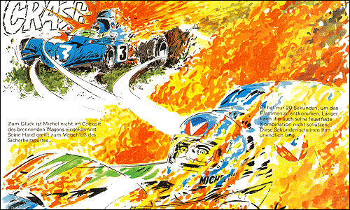 ging sein Bolide in Flammen auf (A23 - Der Fluch der Piste).