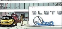 Das Folge-Album beginnt damit, dass wir miterleben müssen, wie an der uns wohlbekannten Fabrik der Name Vaillante verschwindet und stattdessen die Marke "Slate" von Ethan Dasz montiert wird. Die Automarke Vaillante existiert nicht mehr...