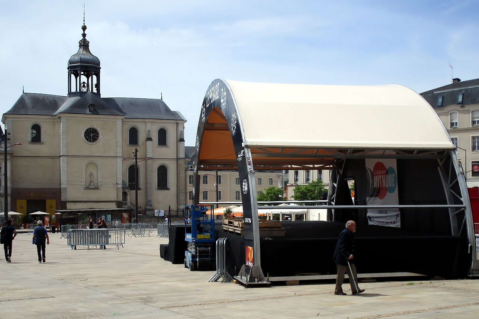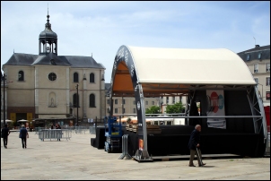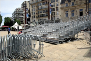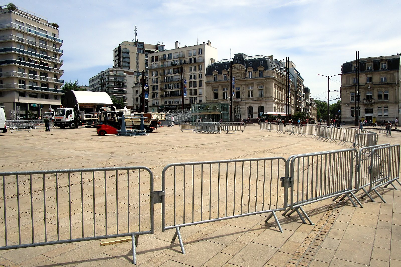 Die Showbühne und die Tribüne blieben stehen, denn am Freitag sollte die Fahrerparade noch einmal über den Place de la République ziehen.