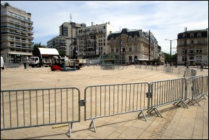 Wir begannen unseren Spaziergang am Place de la République, dessen Aussehen sich über Nacht dramatisch verändert hatte. Plötzlich wirkte er viel größer und weitläufiger, als noch am Vortag, wo sich Tausende von Zuschauern um die Absperrungen drängten, um einen Blick auf die Boliden zu erhaschen...