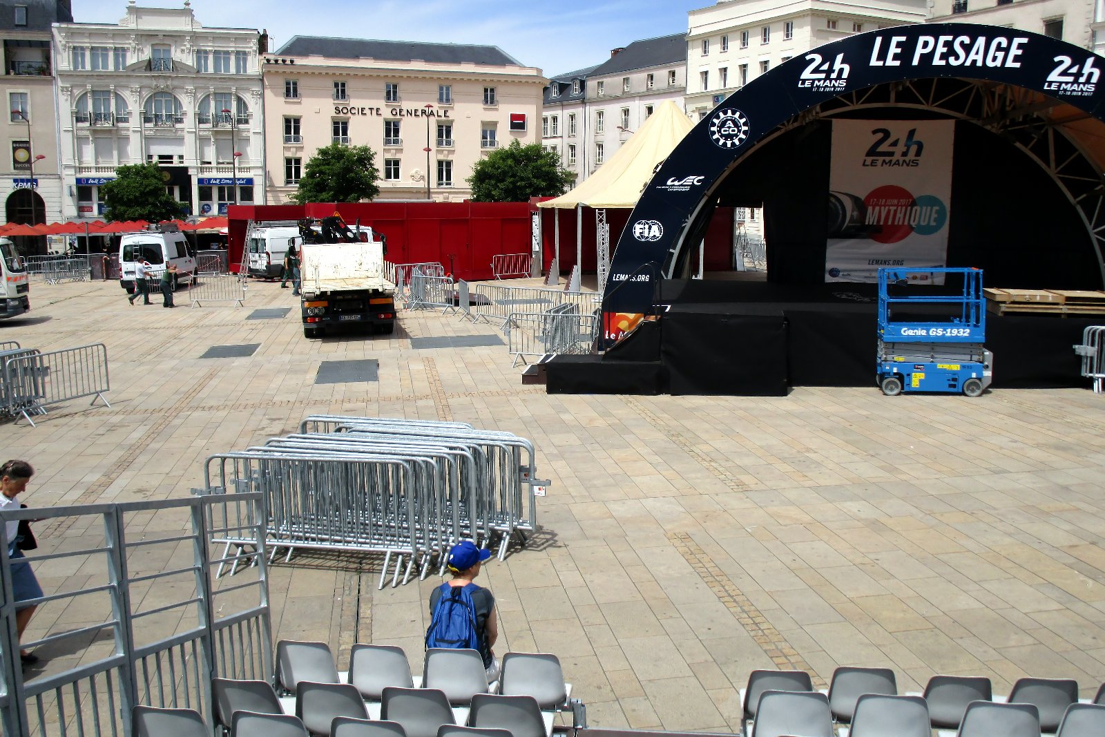 Im Zentrum der Fußgängerzone ist der Place Saint-Nicolas mit dem berühmten Denkmal der 24 Stunden. Ein Rennreifen wird von der Silhouette der Strecke gekreuzt. Unten im Sockel sind die ersten Ikonen der 24 Stunden mit Hand- und Fußabdrücken verewigt: