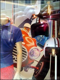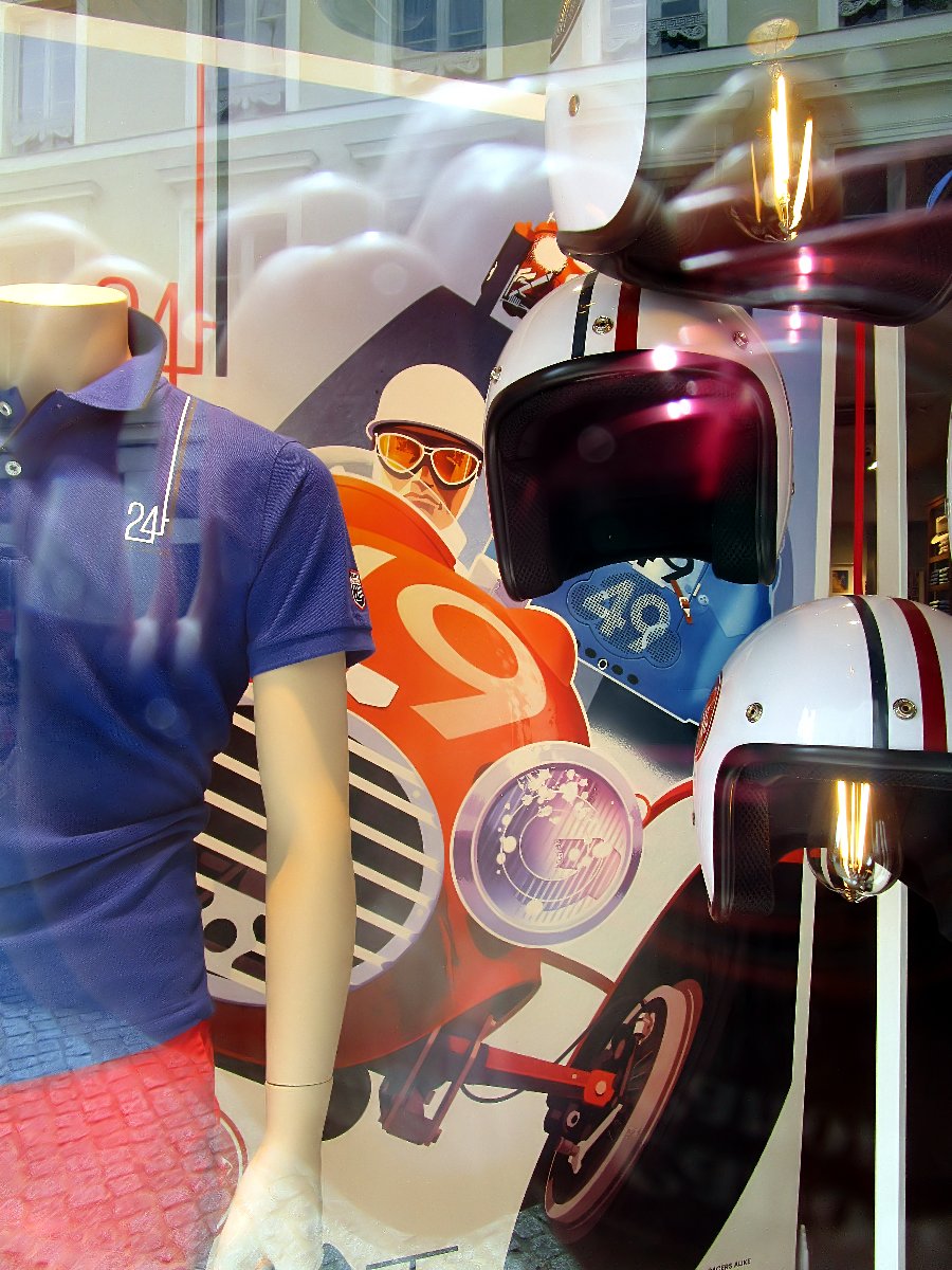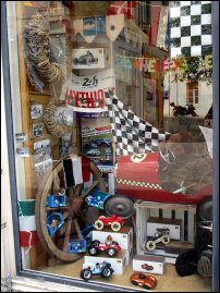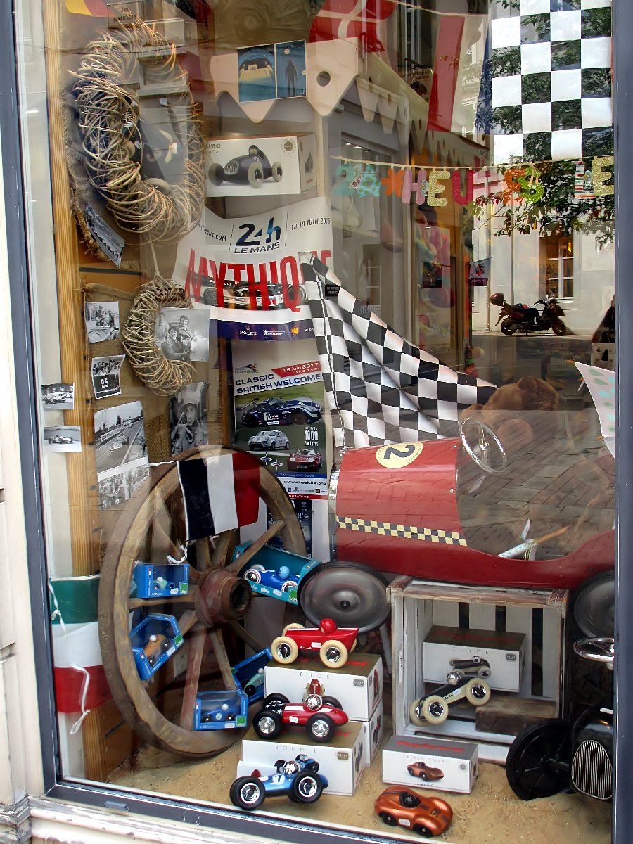 Vom Platz ausgehend schlenderten wir durch die Fußgängerzonen der Innenstadt von Le Mans und freuten uns über die zahlreichen mit Rennmotiven geschmückten Geschäfte. Cafés, Modeboutiquen, Apotheken, Bäcker und Fleischer - alle verzieren ihre Auslagen mit motorsportlichen Utensilien, auch wenn es manchmal nur eine karierte Zielflagge ist. Die ganze Stadt lebt die 24 Stunden!