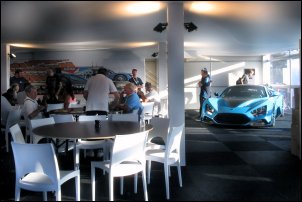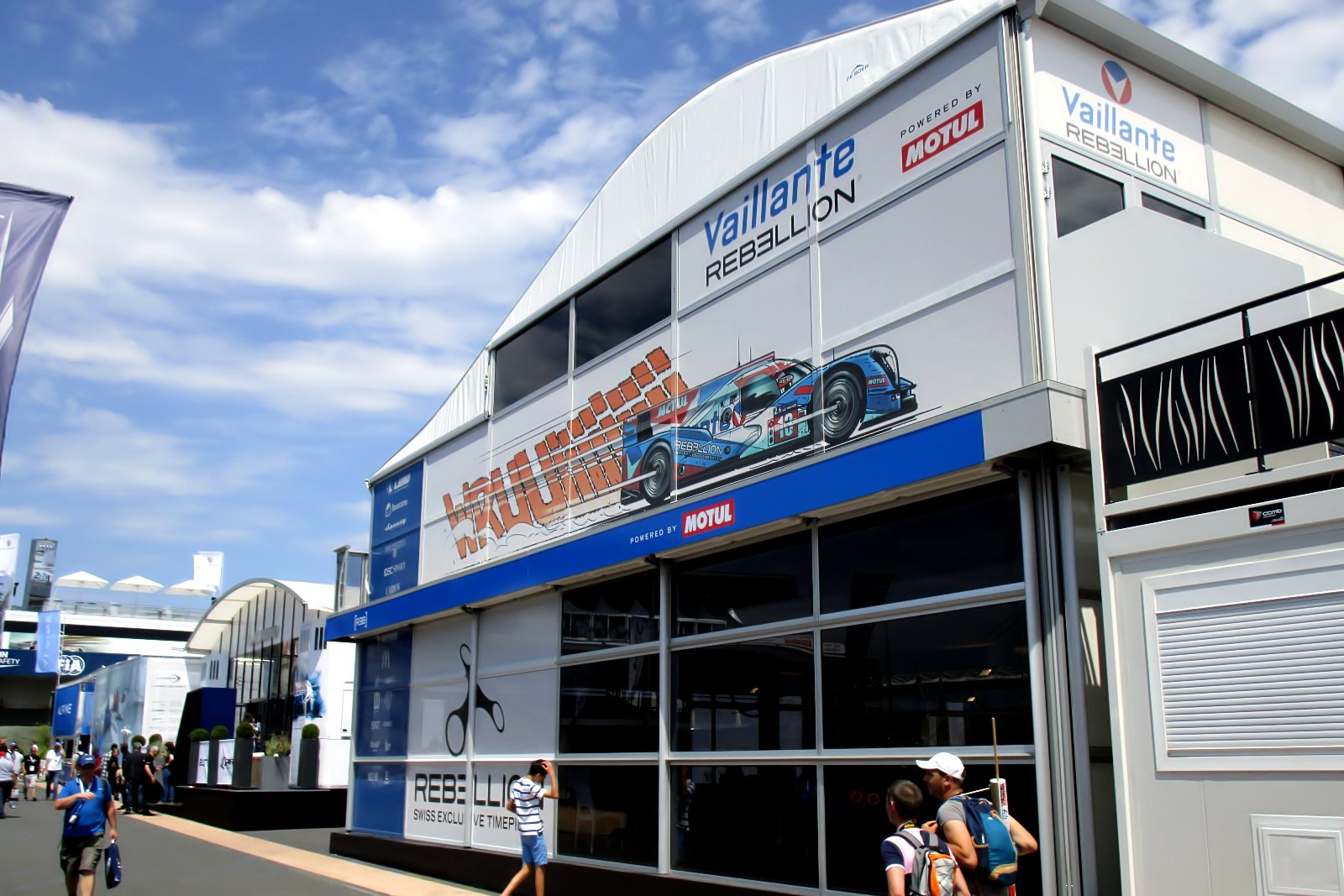 Nebenbei wandert man auch hin und wieder durchs Fahrerlager. Denn an den Trainingstagen ist ein Teil des "Paddocks" für das Publikum zugänglich, was dann am Rennwochenende nicht mehr der Fall ist. Und so entdecken wir Vaillante-Rebellions Hospitality-Bereich, der natürlich nur von Teamangehörigen und geladenen Gästen genutzt werden kann. Macht mächtig was her.