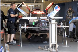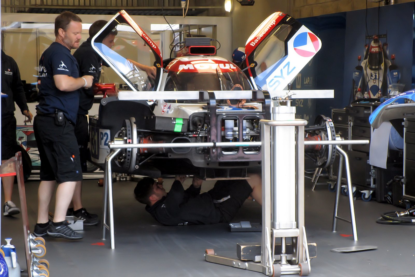 Nachdem am Sonntag und Montag grundlegende Dinge, wie Maße, Räder, Unterboden, Sicherheitseinrichtungen usw. geprüft wurden, werden am Dienstag die Hybridantriebe der Werks-Prototypen von Porsche und Toyota noch einmal an der Rennstrecke auf Herz und Nieren überprüft. Die Kontrolle ist sehr komplex und erfordert spezielle Geräte, sodass diese Prüfung nicht bei der öffentlichen Abnahme auf dem Place de la République gemacht werden kann. Während dieser Check nicht öffentlich ist, gibt es für das Publikum der 24 Stunden am Abend eine Autogrammsession mit den Fahrern in der Boxengasse.