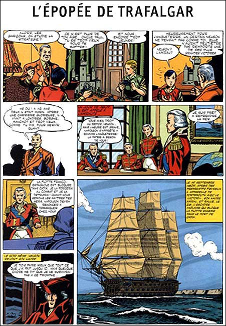 Auch Jean Graton begann seine Zeichner-Karriere als Oncle Paul-Illustrator und gestaltete von 1951 bis 1954 37 Episoden dieser Reihe. Hier die Seite 1 von "L'épopée du Trafalgar", erschienen 1952 in Spirou 735. Drei Geschichten wurden von Jean-Michel Charlier getextet, zwei von Dino Attanasio, die restlichen Szenarios stammten von Octave Joly, dem wichtigsten Texter von Oncle Paul - er prägte die Serie jahrzehntelang. Bis in die 80er Jahre erschienen ca. 1200 Oncle Paul-Geschichten.